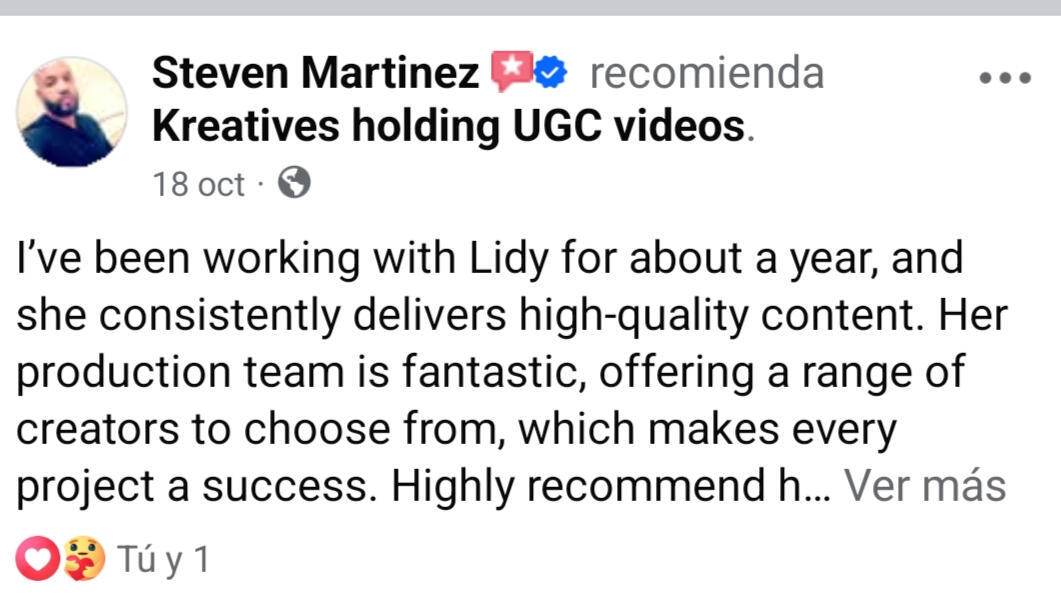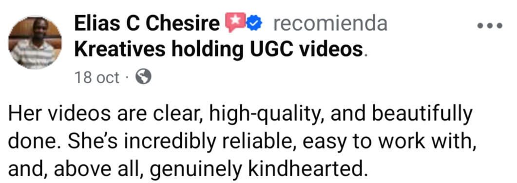 At Kreatives Holding UGC, we have mastered the art of UGC videos to deliver the best results on the market. Our content has helped clients achieve outstanding sales success, scale their businesses, and experience exponential growth, all thanks to strategically crafted videos that captivate and connect with audiences.Why Choose Us?Proven Results: Our videos don’t just tell stories; they create real emotional connections that inspire trust and drive purchase decisions. We know how to transform an idea into a powerful sales tool.Professional and Passionate Team: Our team of actors is highly dedicated and professional. Their ability to convey authentic emotions—from genuine smiles to real tears—ensures that every video is memorable and impactful.Product Versatility: We work with all types of products: jewelry, acrylics, canvases, and any other item you want to showcase. No matter the product, our expertise will make it shine like never before.Tailored to YouWe understand that every client has different needs and budgets. That’s why we offer flexible options, from simple solutions to exclusive projects. Each video is custom-made to align with your goals and resources.The Secret to Our SuccessWith years of experience in UGC video creation, we’ve perfected the principles of neuromarketing and persuasive psychology. We know how to connect with your audience’s emotions, building trust and motivating action. Every detail, from acting to editing, is designed to take your brand to the next level.We’re Here to Help You SucceedReady to explore how we can work together? Contact us to see our portfolio of services and design a solution tailored to your needs and investment capacity. We’re here to listen and provide personalized solutions to help you achieve the success you deserve.📞 Phone & WhatsApp: +34 677 70 87 54